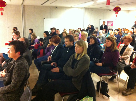 2013年2月7日下午,雪后的斯洛文尼亚Celje古城气温骤降,寒气袭人;而市中心图书馆Levstikova礼堂内却充满了欢声笑语、处处洋溢着祥和的节日气氛。伴随着RACIO SOCIAL学院院长Tatjana DOLINŠEK女士热情洋溢的开幕致辞,卢布尔雅那大学孔子学院献上了一台精彩温馨的金蛇送福迎春文化交流庆祝会,100多名社会各界人士欢聚一堂,在这座斯洛文尼亚文化古城共迎中国蛇年新春的到来。