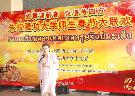 “蛇舞迎新春,汉语传四方”。2月6日,朱拉隆功大学孔子学院(朱大孔院)与朱大中文系联合举办的蛇年春节大联欢活动在朱大诗琳通楼拉开帷幕,来自朱大孔子学院及朱大中文系的师生一百余人欢聚一堂,共庆蛇年春节的到来。朱拉隆功大学副校长甘拉雅女亲王、朱大孔子学院傅增有院长出席庆祝活动并致辞。