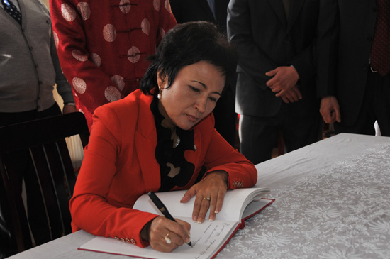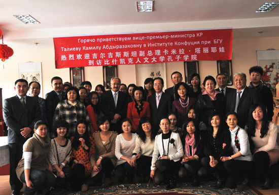 吉尔吉斯斯坦政府副总理卡米拉•塔利耶娃为比什凯克人文大学孔子学院题词