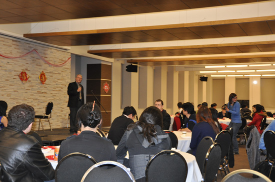晚上7点半,卡尔顿大学副校长兼教务长Peter Ricketts教授代表学校致辞,向与会中外嘉宾和学生祝贺中国新年,充分肯定了中加交流的价值和意义,对孔子学院对于卡尔顿大学做出的贡献特别致谢,最后用中文对大家说“新年快乐”。