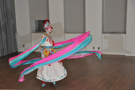 随后,中外学生表演了丰富多彩的文艺节目,既有时尚炫丽的中国流行歌曲和英语流行歌曲,更有精彩纷呈、唯美唯幻黄梅戏《谁料皇榜中状元》,有板有眼、动作精致、服饰华丽的京剧片段《借扇》(孙悟空三借芭蕉扇的第一借),旋律优美、风情独特的二胡独奏《赛马》,以及最为盛大中国汉代、清代服饰表演和解说,还有学生还奉献了动感十足的一段时尚街舞。