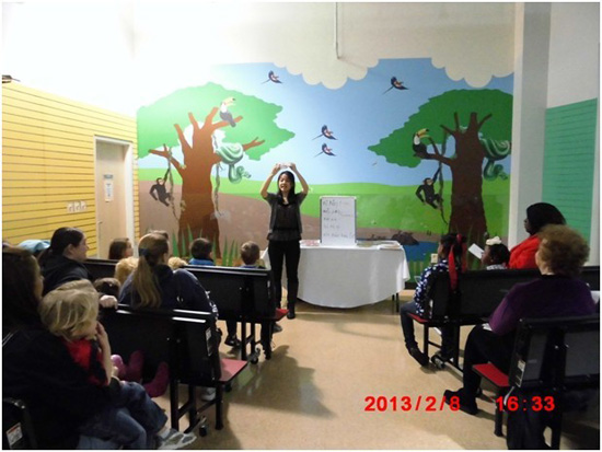 该中心特别为中田纳西州立大学孔院准备了一间教室,由三位孔子学院的老师在三个小时内的固定时间里进行为时15分钟的微型课教学,课前孩子和家长们会听到中心工作人员发出的广播通知,时间一到大家即蜂拥而至,把一间空旷的大教室塞得满满的。从“你好”“谢谢”到“新年好”;从“年”的故事到十二生肖的文化介绍,三位老师用不同的教学方法,积极调动参与者的学习兴趣和热情,教室里不断爆发出掌声和欢笑声,气氛欢快热烈,当听到课堂上金发碧眼的孩子和家长们大声喊出新年好的时候,让在座的所有华人朋友们不禁动容,能以这样特别的方式来庆祝我们传统的新年也别有一番滋味。老师的新年着装也让孩子们喜爱异常,纷纷要求合影留念。