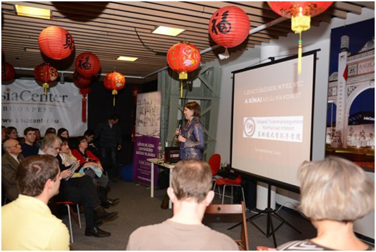 塞格德大学孔子学院的辛莉薇院长正在主持中国知识竞赛。