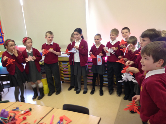 该活动从1月28号开始,为期两周,每天两所小学,让该地区的每一所小学都要感受到中国年的快乐。为把该项活动做大、做好,该课堂的两位汉办老师提前一个月就着手准备新年活动,做灯笼,写福字,剪春字,做红包,舞狮子,所到之处,无不受到学生老师的热烈欢迎,让每个学校的师生真真切切地感受到了中国新年的魅力。