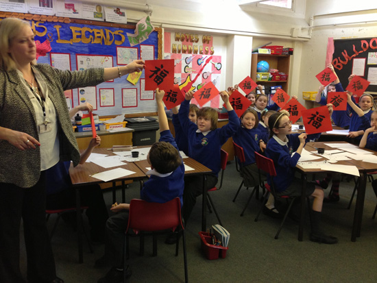 蛇年春节将至,国内正是张灯结彩,年味渐浓的时刻,但远在英国的Wirral地区,并没有因为文化不同而显得过于平静,恰恰相反,该地区的小学却年味正浓,挂灯笼,贴福字,发红包,舞狮子,处处飘荡着中国年的味道。嘉德中学孔子课堂为在Wirral地区更好地推过中国文化及汉语,提前布置,精心筹划,由汉办老师在该地区的小学里面开展中国新年庆祝活动。
