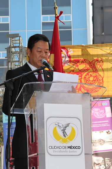 墨西哥城当地时间二月九日上午十一点,即中国农历新年第一天,一场别开生面的蛇年春节大联欢在墨西哥城市中心洪堡街隆重上演。此次活动是由墨西哥国立自治大学孔子学院与墨西哥城古城区文化委员会首次联合举办的大型中国新年庆祝活动。中华人民共和国驻墨西哥大使曾刚先生、墨西哥城国际司司长卡德纳斯先生、墨西哥城古城区文化委员会主任穆尼奥斯等多位领导应邀出席了此次活动。中国驻墨西哥大使曾刚代表中国大使馆向在场的中墨人民致以了新春的祝福:“我非常高兴参加由墨西哥国立自治大学孔子学院和墨西哥城古城区文化机构共同举办的新年庆典活动。在此我仅代表中国驻墨西哥大使馆,祝福大家能够喜庆、祥和地度过一个在中国文化中象征着睿智、多闻的蛇年。”而随后的墨西哥城古城区文化机构的负责人穆尼奥斯・桑蒂的演讲则充分肯定了这次庆典的积极意义:“在这个特殊的时刻、在这条特殊的街道……我们举行新年庆典正是为了拓宽中墨双方友谊的精神、感恩的精神、分享的精神。我们希望将这种人文关怀倾注到每一个在墨西哥、尤其是在古城区生活的中国公民身上来。”
