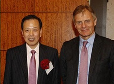 中丹两国大使(李瑞宇先生与Friis Ae Petersen)在新春商务宴会上的合影