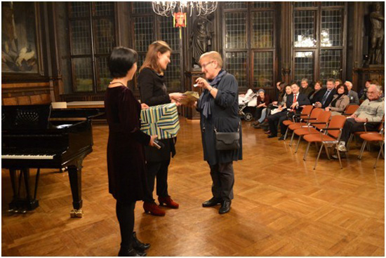 魏玛包豪斯大学外办主任赫碧溪女士为抽到一等奖的幸运观众颁奖