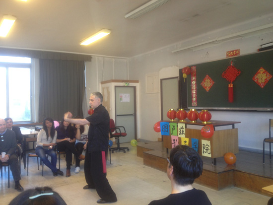 酷爱中国文化的孔院学生Paul手提红灯笼为大家带来的一首《恭喜发财》赢得了满堂喝彩,“中国迷”Ivan打的一套“咏春拳”展现出“中国功夫”的独到之处,孔院学生与志愿者合唱的《茉莉花》《歌声与微笑》以及《月亮代表我的心》让晚会充满了温馨,留学生们与法国友人合跳的法国传统《鸭子舞》幽默诙谐,孔院志愿者带来的葫芦丝曲《月光下的凤尾竹》和笛曲《梅花三弄》让外国友人感受到中国民族音乐的柔美,图卢兹孔院中方院长张金桐教授即兴演奏的《瑶族舞曲》和《春节序曲》以及由法国传统民歌改编的笛曲更是掀起了全场的高潮。