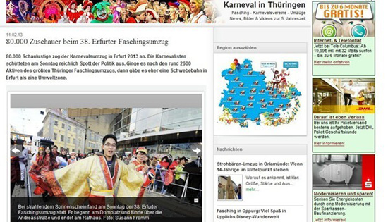 [!--allfrom--]| “中国主题”成为德国埃尔福特市狂欢节亮点— 记德国埃尔福特孔子学院参加2013年第38届埃尔福特狂欢节大游行 | |