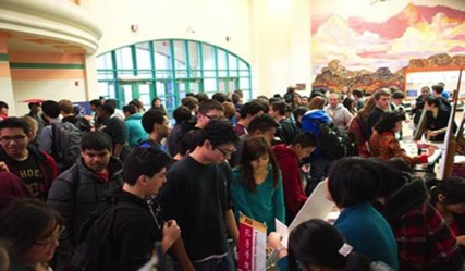 Hamilton高中的学生们正在各个展台前参加孔子学院精心准备的各类活动。