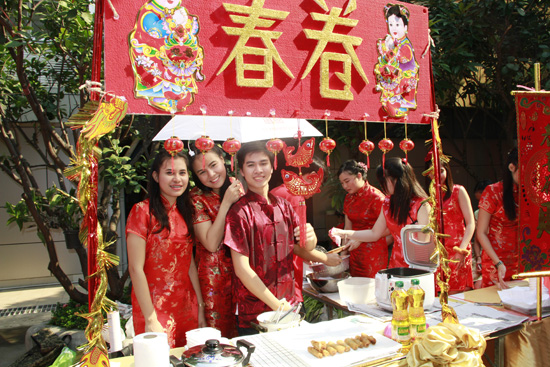 活动设置了“中国文化一条街”,由川登喜皇家大学学生们亲手制作的剪纸、中国结等中国传统文化作品及春卷、小笼包等中国特色小吃一一呈现在与会嘉宾面前,引来众人驻足,赞叹声不绝于耳。