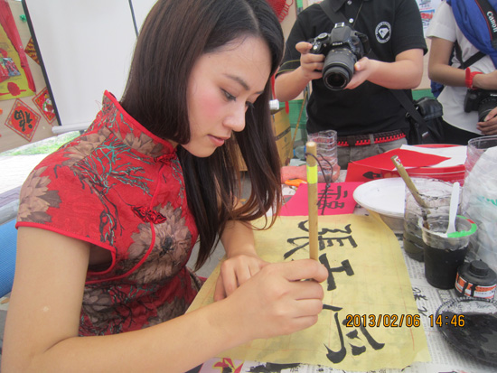 在泰国农业大学孔子学院为“走进中国”文化体验活动所设计的众多项目中,中国书法尤为受到欢迎。特别是人们在书法魅力的感召下,开始追寻自己几近模糊的中国姓氏,踏上了寻根之旅,把自己的心重又同祖先的父母之邦连在了一起。