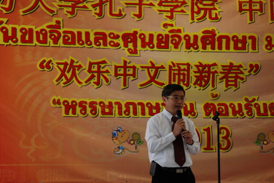 东方大学副校长Wirogana Ruengphrathuengsuka博士在开幕式致辞中提到春节是全球华人最重要的传统节日,高度赞扬了孔子学院在促进泰国学生了解中国文化、增进中泰友谊等方面作出的努力,并祝福所有师生新春快乐、蛇年大吉。