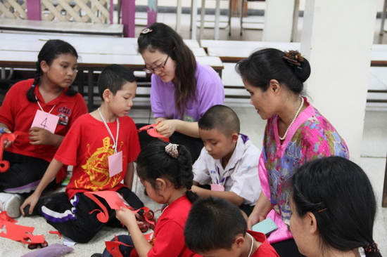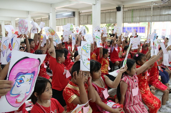 分班教学是孔院教师在长期以来的文化活动中驾轻就熟的内容。孔院教师为同学们分组依次进行了中国文化体验教学,四组学生依次体验茶艺、中国歌曲、剪纸、脸谱制作,并兴高采烈地向老师们展示了他们的成果,红色的蛇年剪纸,喜庆的中国新年歌曲,漂亮的京剧脸谱,并争先恐后地品尝了老师教他们沏制的新年香茶。副校长Dawan Janbumrung也亲自参与了活动全过程,与同学们一起剪纸、画脸谱、唱歌和品茶。最后,由Attakan Suebchuea校长亲自评选出学生的优秀作品,学生们积极踊跃地向校长展示了自己的作品,校长为挑选出的获得优秀作品奖的学生们颁发了奖品。活动结束时,同学们仍意犹未尽,期待下次活动。
