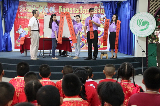 2月7日,临近中国最隆重的传统节日——春节,曼松德昭帕亚皇家师范大学孔子学院全体教师携带各种文化活动用品,喜气洋洋奔赴Watladplakao学校举办“金蛇迎春”汉语文化营活动,受到Watladplakao学校师生的热烈欢迎和热情接待。校长Attakan Suebchuea和副校长Dawan Janbumrung出席了开营仪式,全校110人参加此次活动。在开营仪式上,Attakan Suebchuea校长致欢迎词,对孔子学院一直以来对学校文化活动的支持表示感谢,并表示,中国在当今世界上起着举足轻重的作用,而且是亚洲最大的国家,汉语是一门非常重要的语言,要求同学们一定要学好汉语,也要珍惜这次文化营的机会好好体验中国年。曼松德孔院院长温象羽向全体师生致以新年贺词,对Watladplakao学校对中国文化的重视表示感谢,希望能借此次新年活动为蛇年的活动打开一个良好的开端,将双方的文化活动更好地进行下去。