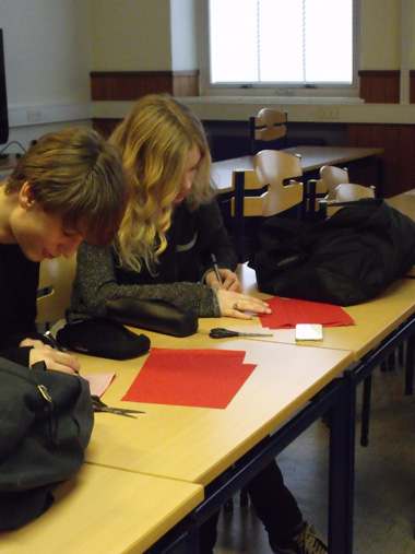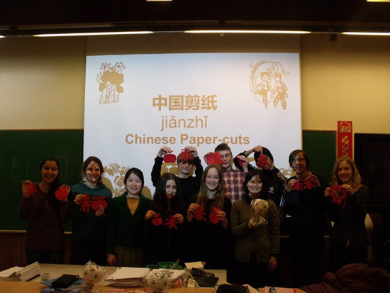 2013年2月6日下午,丹麦哥本哈根商务孔子学院的汉语教师单轶凡为该校8年级的学生们带来了一场具有浓重中国特色的剪纸课。