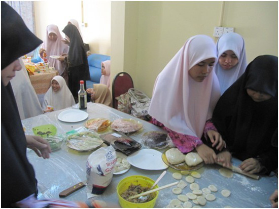 为了办好这次活动,孔院的老师们进行了充分的准备,孔院院方派送了另一位志愿者教师在周末前往吉兰丹协助举办活动,并将汉办寄送的中国文化物品和大红灯笼带到吉兰丹分校进行场地布置。活动同时也获得了该学领导和广大师生的欢迎和支持,除选修中文课程的学生之外,还成功邀请到了吉兰丹校区的主要校领导及教职员工,参与人数达到八十人之多。此次活动重在学生的全程参与,从食材到餐具,严格遵守清真食品的要求; 从和面、擀皮儿、拌馅儿到包饺子、煮饺子,全部为学生提供亲手体验的机会,让学生们感受到动手制作饺子的乐趣。此次活动将场地分为三个区域:语言交流区(所有参加活动的学生都要学习有关中国春节祝福的话)、学习制作饺子区(餐厅)及烹饪饺子区(厨房),并特意为师生们准备了丰富的清真茶点,孔院老师们忙里忙外,给学生讲解中国纯铜文化, 手把手教学生们制作、烹饪饺子,教学生如何使用筷子,那些心灵手巧的女生们,饺子都包出花儿来了!从清晨一直到夜幕降临, 该校师生热情高涨,笑语欢声,聚集一堂,师生共同品尝中华美食,感受中华文化,交流汉语学习,和孔院的中国老师们一起,在一片欢乐祥和的气氛中度过了美好的除夕之夜。