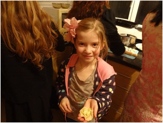 小朋友Laura 兴致勃勃地展示自己的半成品