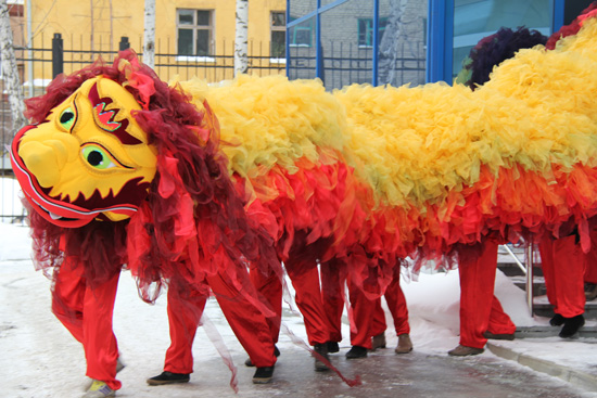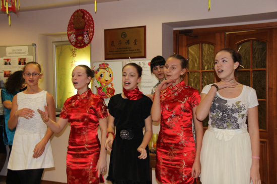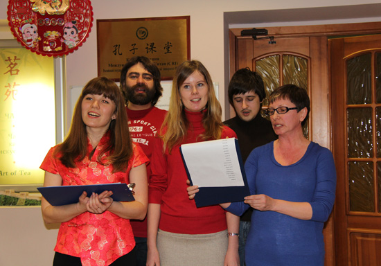 一年一度的春节到了。2月9日当地时间下午四点俄罗斯国立职业师范大学广播孔子课堂的新春联欢会随着“狮舞”拉开序幕,迎接前来参加活动的宾客们。联欢活动精彩纷呈:各种中华文化小讲座,如茶艺、太极拳、剪纸、画脸谱,以及中国歌曲卡拉OK;中国诗歌朗诵比赛,五年级学生娜塔莎以一首毛泽东的《沁园春•雪》夺得头魁;师生歌舞表演,老师们的秧歌舞倍受欢迎,把活动推向高潮,这也是广播孔子课堂成立以来俄罗斯人跳的第一个中国舞;品尝中国饺子,等等。