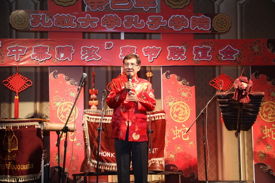 2月8日,泰国孔敬大学孔子学院于centara酒店举行 “中泰情浓”春节联谊会,晚会邀请了孔敬大学校长克迪才副教授(Kittichai)、中国驻孔敬领事馆谢福根总领事以及孔敬大学各学院院长、当地合作单位负责人等80余人。