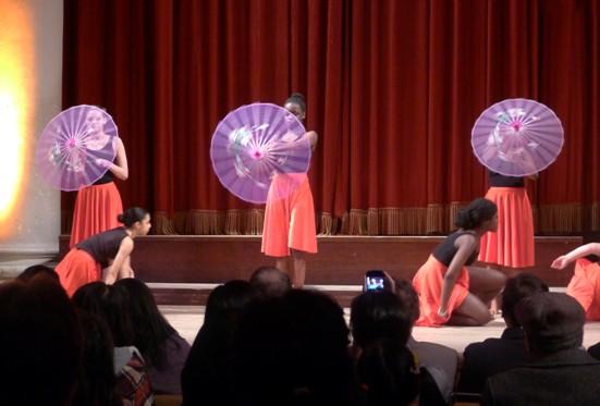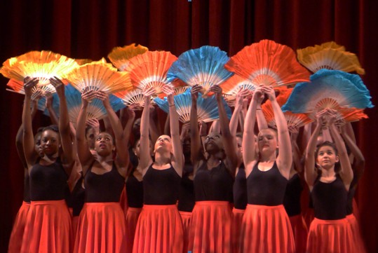 金斯福德孔子课堂精心编排的舞蹈《荷塘月色》入选了本次英国春晚。当帷幕拉开,悠扬温婉的音乐响起,整个音乐厅突然变得鸦雀无声,这些年轻的舞者身着美丽的红裙,手持色彩缤纷的扇子进入了观众的视线。整个舞蹈分为彩扇——彩绸——彩伞三个部分。学生们用他们优美的舞姿把所有观众带入了中国南方夏夜的美景之中。她们出神入化的表演令全场观众折服并博得了全场观众热烈的掌声。金斯福德孔子课堂的学生表演获得了圆满的成功。