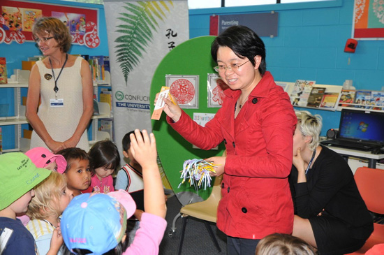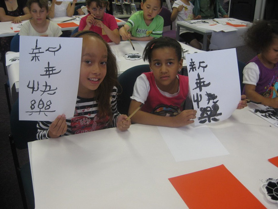 为了庆祝2013中国新年,奥克兰孔院和当地多个图书馆联合举办了丰富多彩的蛇年文化活动,吸引了大批的小朋友和家长们参加。在2月中旬的一周多时间里,孔院派出多名老师奔赴奥克兰东区、中区和西区等有代表性的图书馆,给孩子们讲中英双语故事,教授中国传统书法、剪纸等,精彩的活动深受图书馆和当地学生、老师和家长们的欢迎。