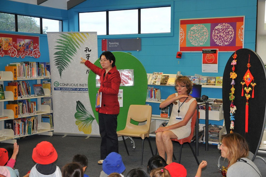 在奥克兰西区的Pt Chevalier图书馆,来自当地小学和幼儿园的40多位孩子和老师们参加了中英双语故事会。志愿教师Sunny给孩子们讲解12生肖的故事,带领他们唱中国新年的歌曲,和孩子们讲有趣的维尼小熊的双语故事,受到孩子们的热烈欢迎。