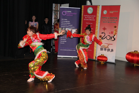 2013年2月7日,伦敦中医孔子学院与伦敦南岸大学学生会联合举办了庆中国春节演出活动。下午五点到六点,伦敦南岸大学共160多位师生在伦敦南岸大学的学生中心楼Edric大厅共同观看了演出。