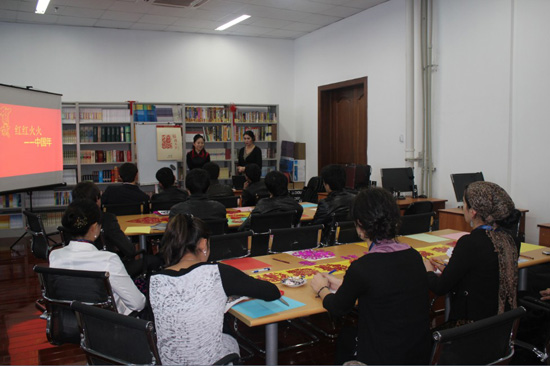 孔子学院教师现场教授剪纸艺术