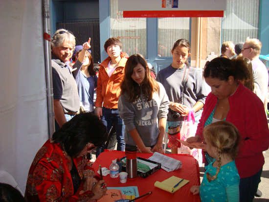 孔子课堂巴纳德中文磁性小学的学生用汉语向观众拜年,童趣盎然的表演博得大家的阵阵喝彩;孔子课堂河景国际小学表演了独具藏族特色的歌舞,也赢得台下的啧啧赞誉;惟妙惟肖的12生肖图案呼之欲出,吸引了众多游客驻足观赏;五颜六色的生肖图案彩绘,让小朋友们不由得跃跃欲试;极具魅力的中文名字及其书法,也让不少美国游客禁不住“改名换姓”。