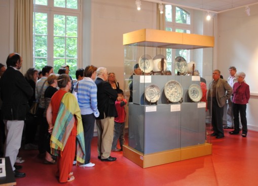 开幕式上,SébastienBLANC先生作为这些瓷器的收藏者给大家详细介绍了这些藏品的历史及他个人的收藏故事。他的介绍使参加开幕式的法国朋友了解到了“汕头瓷”并不意味着这些瓷器在汕头生产,而是从“汕头”这个重要港口输出到东南亚各国。“汕头瓷”区别于驰名中外的景德镇瓷器的最大特点则是质朴自然及其较强的实用性。大家对这些展品表现出了的浓厚兴趣,SébastienBLANC先生同时也就大家提出的问题一一作出了耐心的解答。