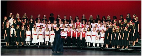 CHANDLER儿童合唱团的八十个孩子演唱中文歌曲《喜迎春》和美国歌曲《我爱你,亚利桑那》