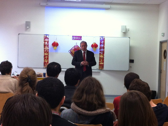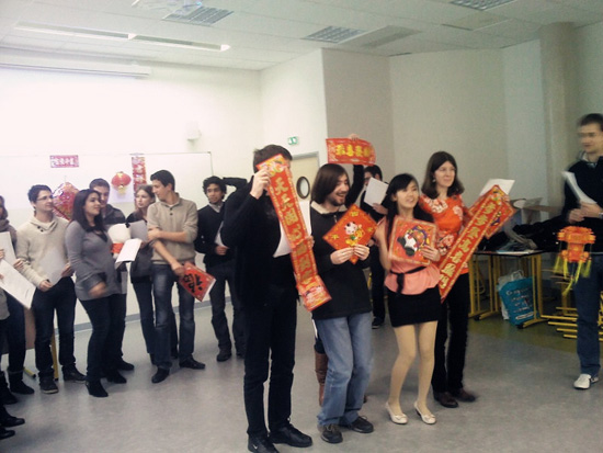 在癸巳年春节即将到来之际,在中国各地喜迎蛇年的同时,在遥远的法国南部,坐落于历史悠久的卡斯特尔(Castres)城的图卢兹孔子学院ISIS大学教学点的师生们也迎来了在这里的第二个春节。2013年2月6号中午时分,虽没有火树银花万家灯火的妆点,也没有的素裹银装丰年瑞雪的映衬,但ISIS大学的新年庆祝会现场依然年味儿浓浓。ISIS大学RIGAUD校长也出席了当天活动。