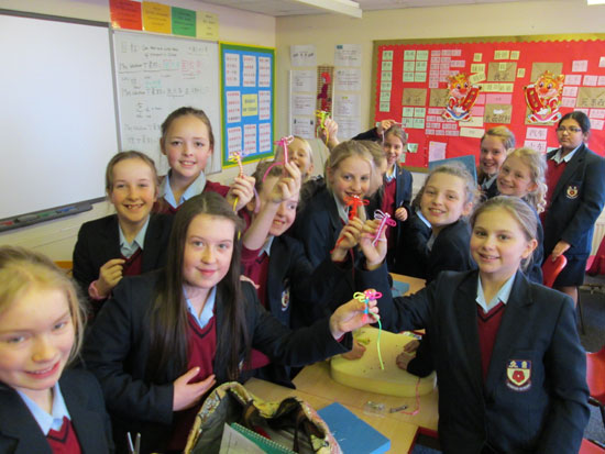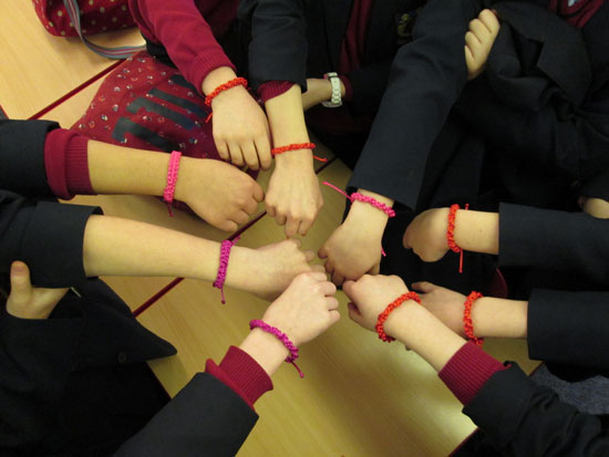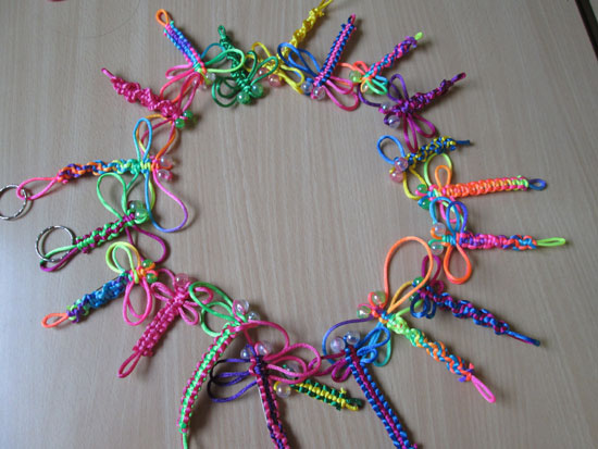 这是女王中学开设中国结Club的第5周,越来越多的女孩儿被这个Club所吸引,参加的人数从最初的6人增至现在的20人。课堂上,女孩儿们一面惊叹于中国这一传统手工艺术的精美,一面迫不及待地请求汉办老师快快传授编结的“秘笈”。小小的中国结,既考验女孩儿们的手艺,也考验她们的耐心,为了增强她们编结的信心,汉办老师特别从最简单的平结开始教授,眼见着一根根简单的彩线在自己的手里变成了一只只美丽的蜻蜓,一个一个精致的手链,女孩儿们兴奋不已。她们纷纷表示希望学习制作更多更美的中国结,并将它们作为礼物赠送给自己的朋友、家人,传递她们美好的祝福。