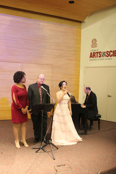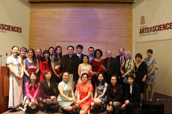 美国东部时间2013年2月8日晚上7点30分,由南卡孔院承办的中国新年音乐会在南卡罗来纳大学Gambrell Hall表演厅拉开帷幕。孔院的全体工作人员到场,中美观众齐聚一堂,共同欣赏了这场温馨动人的音乐会。