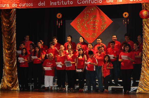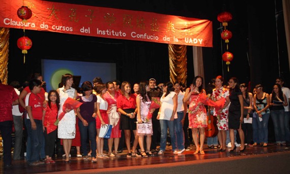 2010年5月28日,墨西哥尤卡坦自治大学孔子学院在尤大剧院成功举行了2010年春季班学期汇报演出暨学业证书授予仪式。结业典礼由孔院汉语课程三级班的Nubia、Miguel以及四级班的Ricardo共同以西语和汉语进行主持。尤大教务处处长卡洛斯-埃察沙雷塔、孔院中方院长吴小燕博士及副院长帕米拉小姐出席了结业典礼。吴院长在开场致辞中代表孔院向顺利完成学业的同学们表示热烈的祝贺,鼓励大家不仅要学好汉语这门语言,更要积极了解中国文化,并以此发挥桥梁的作用加深中墨两国之间的文化交流。埃察沙雷塔处长亦在讲话中勉励了学生,并表示将大力支持孔院的未来发展,他还表示有空的话也要到孔院学习汉语,并更好地了解自己所喜欢的中国文化。