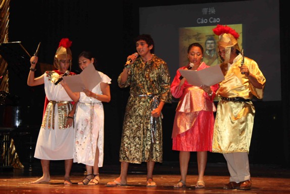 孔院的学期汇报演出在一首《龙的传人》大合唱中缓缓拉开帷幕,这是由刚学习了24个小时的入门级汉语班学员表演的。