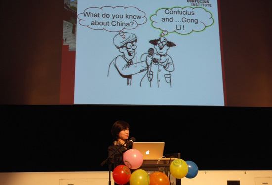 招待会最后,格罗宁根孔子学院中方院长刘婧一老师为全场嘉宾和前来观影的观众做了题为《中国电影文化与电影中的中国文化》的讲座,生动展示了中国电影百年发展脉络以及中国电影的文化特征,并介绍了中国特有的武侠文化和观影文化,让全场观众听得饶有兴趣。