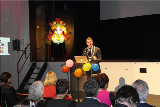 荷兰当地时间2013年2月8日下午17:00,格罗宁根孔子学院第一届孔子电影文化节开幕式暨新春招待会在格罗宁根Forum Image影院隆重拉开帷幕。格罗宁根省省长M. van den Berg先生、格罗宁根市市长J.P. Rehwinkel先生、德国奥尔登堡市德中友好协会主席——Wolfgang Pehlken先生、德国奥尔登堡市经济促进局中国项目办公室主任王昱女士以及荷兰格罗宁根大学相关院系的领导、老师和孔子学院学生代表应邀参加了开幕式。