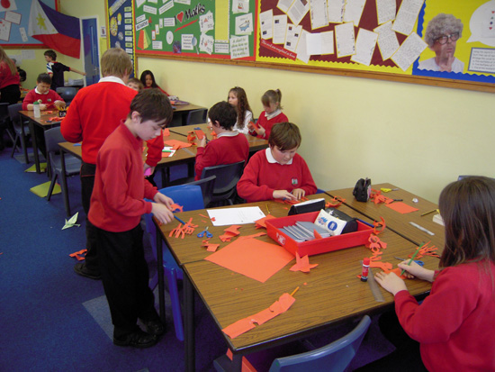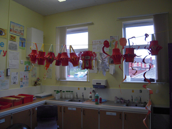 除此之外,两位汉办老师分别在林肯中学的各个辐射中小学校开展了丰富多彩的活动,剪纸、做灯笼、画中国龙,孩子们兴趣盎然,不仅了解了相关的背景知识,他们的手工作品更是把教室打扮得漂漂亮亮。通过学唱中文歌,孩子们初步接触了汉字,生动有趣的形式让学生们不觉得汉字困难,更是喜欢上了唱歌一样的汉语声调、画画一样的汉字书写。老师们带来的中国结、窗花、宫灯,甚至筷子等等,都让孩子们惊叹不已。他们非常喜欢亲切的中国老师,喜欢中国特色的文化作品,更拓展了眼界,开启了他们对中国的深深的向往。