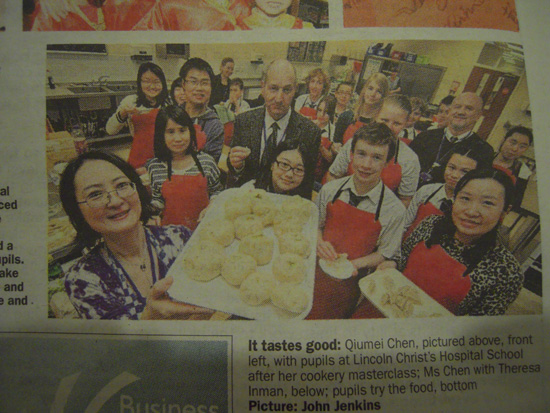 林肯学校校方及语言部对这次活动非常重视,并对两位汉办老师的工作给予大力支持。早在农历腊月初,学校就在大门口布置了中国春节展板,集中介绍相关知识和习俗,教室门口和走廊上也随处可见带有中国元素的装饰。语言部在全校学生中开展了中国新年知识竞赛,奖品也是带有中国特色的工艺品,引起了师生的广泛关注和积极响应,中国文化在学生中得以弘扬。本校中文组陈老师还联系了学校的实践课教室,和两位汉办老师一起带领部分老师、中文学生、和留学生包饺子,热热闹闹的场面让学生领略到中国年的独特,亲自动手乐在其中,他们对中国的兴趣更浓了,学习中文的劲头更足了。中国食物的美味,给校长以及各位师生留下深刻印象,他们也对这次活动给予很高评价。此次活动还被当地报纸Lincolnshire Echo配图报道。
