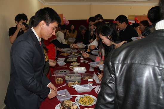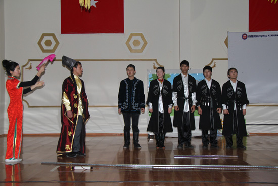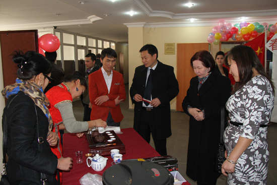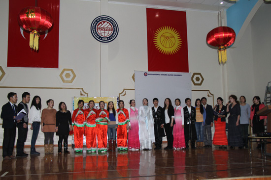 2013年2月21日14:00,在吉尔吉斯斯坦比什凯克市阿拉套大学礼堂内,一场汉语文化盛宴隆重开幕。这就是汉语系师生群策群力,在新春佳节之际开展的“中国文化日”活动。