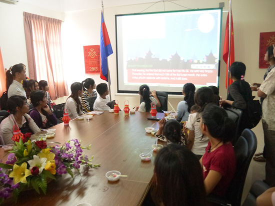 为迎接春节后的另一个传统节日——元宵节,为了柬埔寨学生更了解中华文化。24日下午两点,在柬埔寨孔子学院举行了“孔院元宵喜乐会”活动,参加活动的有60余人,其中年龄最大的有48岁,最小的仅5岁。