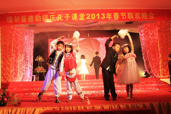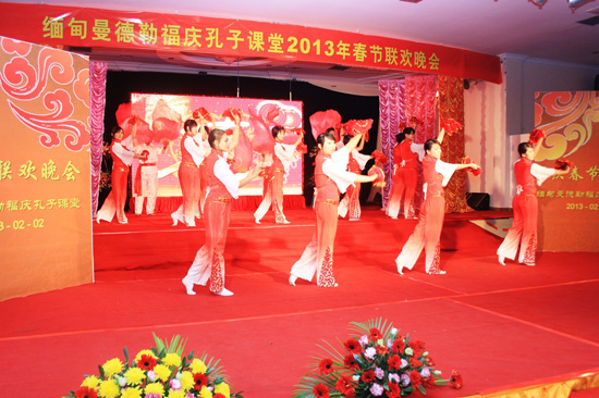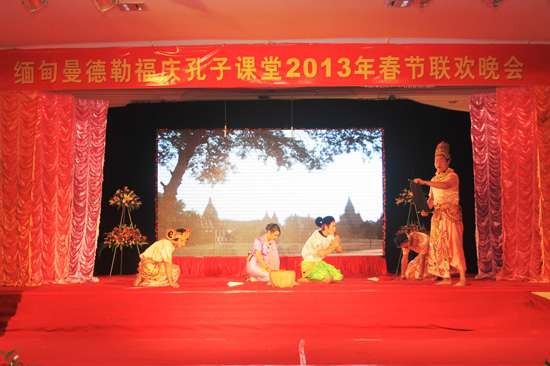 2月2日星期六下午,曼德勒福庆孔子课堂在大礼堂举行2013年福庆春节文艺联欢会。 别开生面的中缅文化大融合演出,博得了观众们的热烈掌声、高度赞扬。