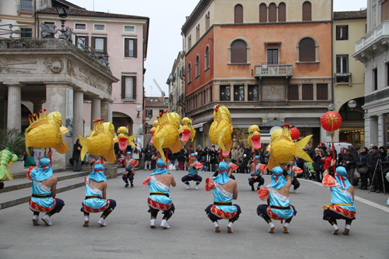 此次活动由帕多瓦孔子学院与威尼斯商会合作,内容包括舞龙、舞狮、鱼灯及武术表演。20多名意大利演员身着盛装,他们舞动着一条蜿蜒灵动的青龙、四只色彩斑斓的雄狮、十几盏活龙活现的鱼灯,渲染着元宵佳节的喜庆气氛,潇洒飘逸的中国功夫引起一阵阵热烈的掌声。最后,为舞狮点睛将整个活动推向了高潮。市民格劳莉亚(Grolia)深深被活动气氛感染,连呼“Bravo!”(“好!”),她兴奋地对记者说:“由意大利人表演中国的节目来庆祝中国的节日,这样的演出太有意义了!”