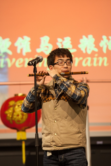 美食之后的节目更是异彩纷呈,孔子学院美方院长孟剑云教授领衔瓦大孔子学院中国民乐演奏团,以及来自浙江工业大学的董英豪同学携竹笛相继登场,身着中国传统服饰演奏《茉莉花》、《喜洋洋》、《扬鞭催马运粮忙》等经典曲目,更添喜庆祥和的节日气氛。浙江工业大学的刘新月老师,将中国传统的手绢和水袖融入京剧的表演,更是引发全场的阵阵掌声;柴婉欣同学的一曲《荷塘月色》,曲调悠扬,娓娓动听;杨建营教授的舞龙和中国功夫表演,刚柔并济,将中国太极的思想贯穿其中,掀起了晚会的高潮。整场晚会历时3个小时,中方高校嘉宾、瓦大师生、中文项目研究生、美国本土小朋友及其他中文爱好者等中西合璧、通力合作,同台演出,相互映衬;吉他弹唱、女高音独唱、民族舞蹈等,各式节目异彩纷呈,一次次把晚会推向高潮。晚会最后在由瓦大中国学生自己组织流行乐队的演奏,全场合唱中缓缓落下帷幕。
