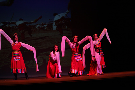 中阿肯色大学孔子学院和中国学生在春节晚会上表演中国民族舞蹈