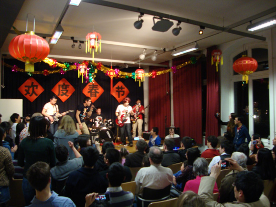 本场晚会还特别为大家提供了免费丰盛的自助晚餐,地道的中国风味不仅赢得外国友人的称赞,更是激发起广大华人和中国留学生的浓浓思乡之情。晚会活动期间,更有劲暴乐队强力加盟,现场的气氛一浪高过一浪!穿插其中的互动游戏环节让台下的观众一起参与其中、乐在其中;抽奖环节让每个人心跳加速,随着最后大奖即将揭晓,大家的心都被提到了嗓子眼——一位中国女生幸运的获得了一张从德国往返中国的机票。