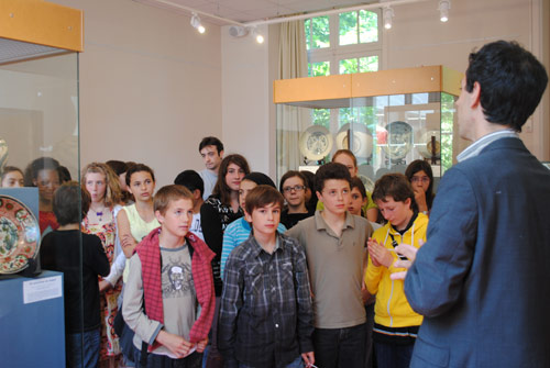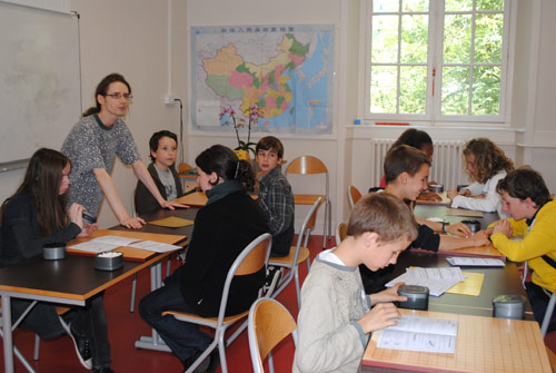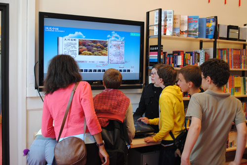 学生们首先参观了正在孔子学院举办的“汕头陶瓷展”.Blaise THIERREE院长为他们深入浅出地讲解了“汕头瓷”的历史和展品的特色。随后学生们又来到了“中国文化体验中心”进行文化体验,通过直观的影音图像了解到了包括中国地理风光,中国饮食,诸子百家,戏曲艺术等多方面的文化知识。参观结束后,他们分别加入到了剪纸,书法,围棋三个兴趣小组进行活动。
